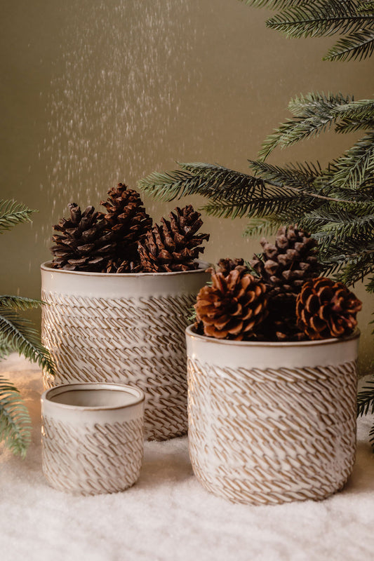 Maceta Beige con Textura Cafe